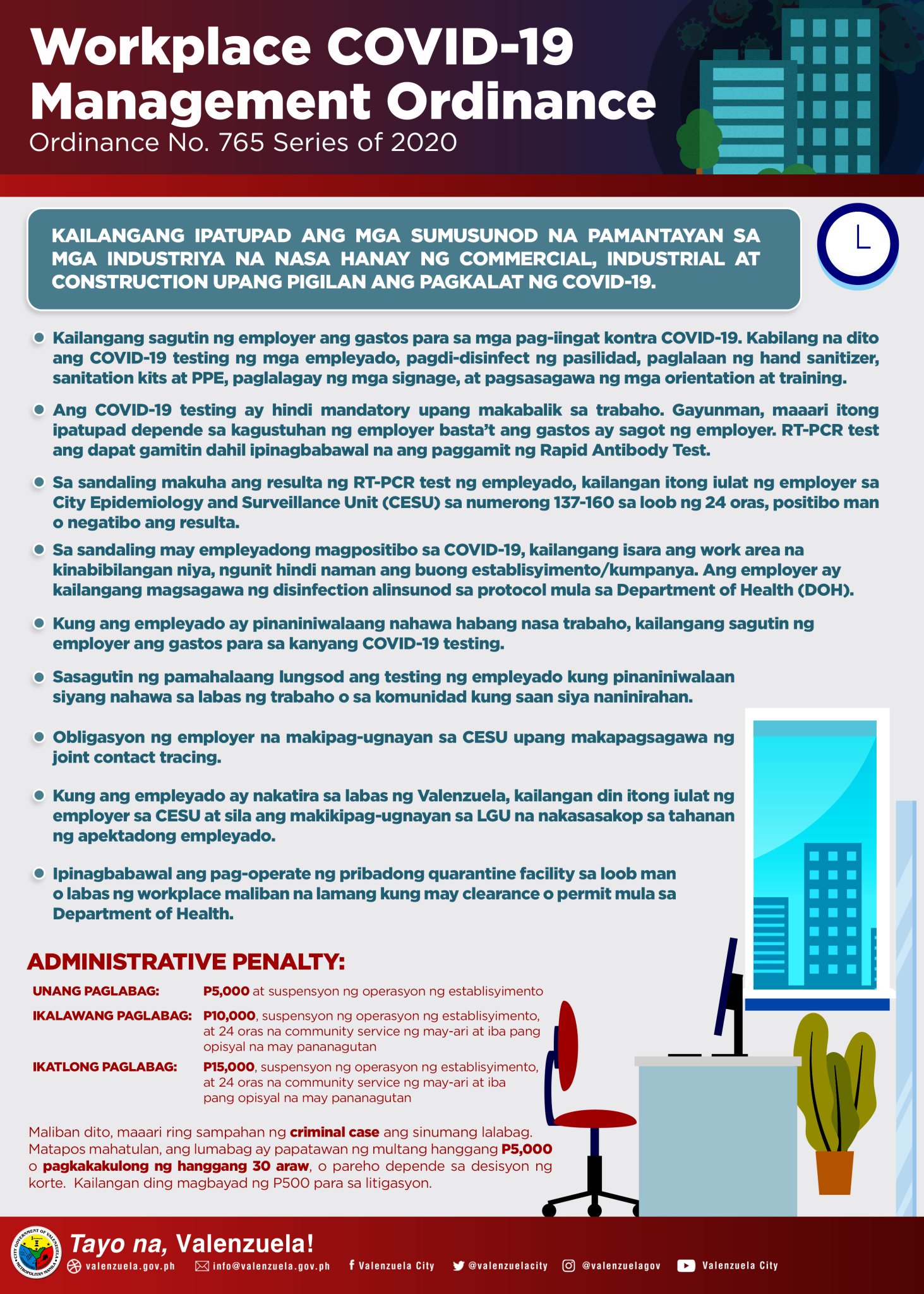 Valenzuelacity On Twitter Alinsunod Sa Workplace Covid 19 Management Ordinance Kailangang Ipatupad Ang Mga Sumusunod Na Pamantayan Sa Mga Industriya Na Nasa Hanay Ng Commercial Industrial At Construction Upang Pigilan Ang Pagkalat Ng
